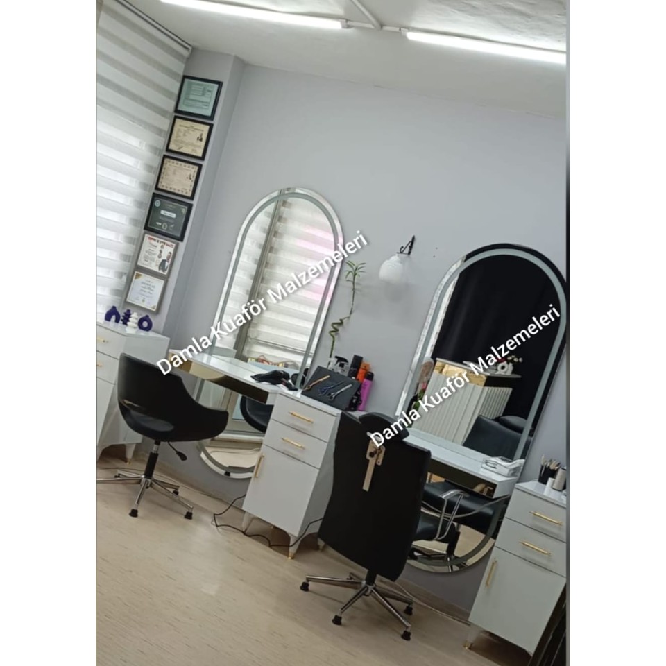 2li kapsül bayan kuaför tezgahı 2 adet kapsül ayna2 adet komodin 2 adet ön kısımlarında ra..